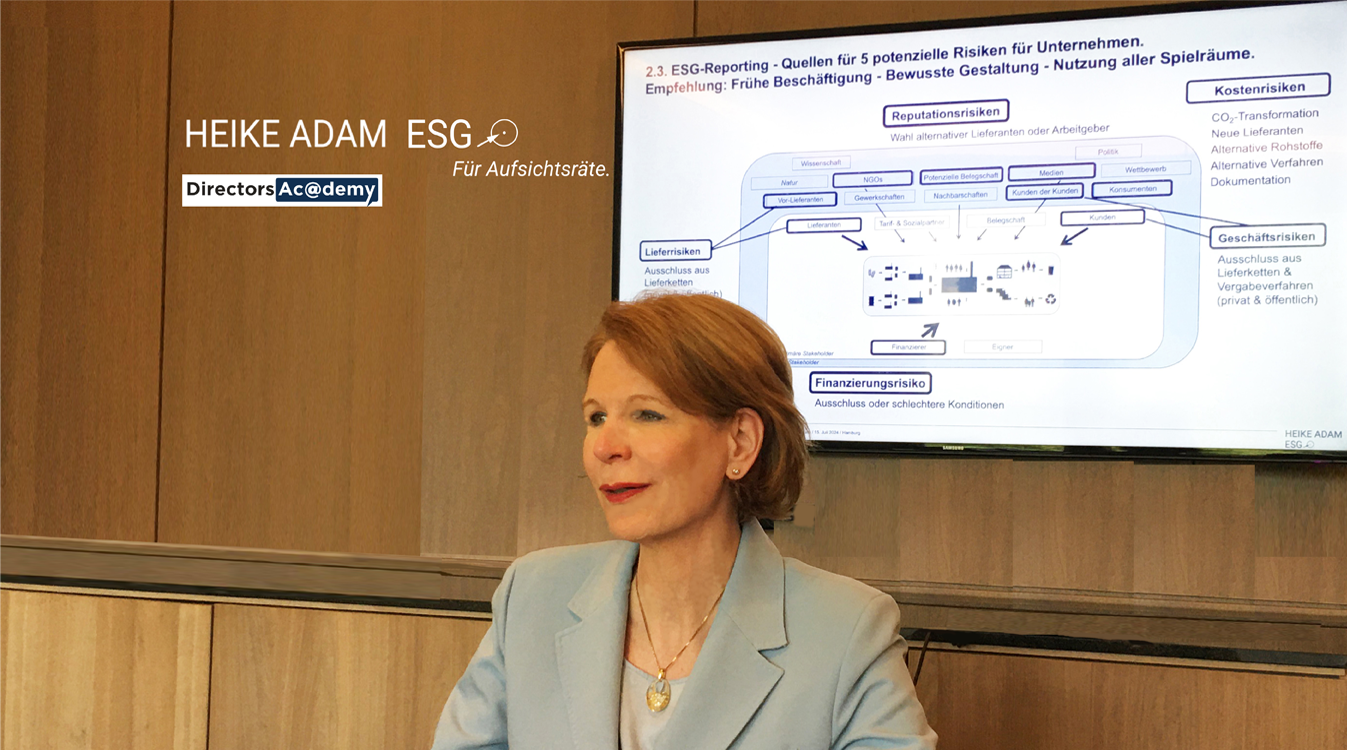 Schulungen für ganze Aufsichtsräte in deutsch & englisch – Details. Sprechen Sie mich gern an. esg@heike-adam.com.