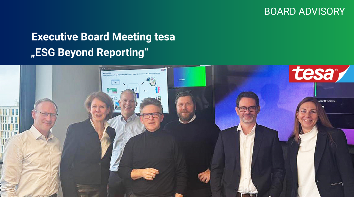 „ESG Beyond Reporting“ – The board of Tesa, a sustainability leader in its business, because it „looked beyond“ early on, took the time for 𝗮 𝘀𝗽𝗮𝗿𝗿𝗶𝗻𝗴 𝘀𝗲𝘀𝘀𝗶𝗼𝗻. 𝗜𝗻𝘃𝗶𝘁𝗲𝗱 𝗳𝗼𝗿 𝗯𝗿𝗼𝗮𝗱𝗲𝗿 𝘃𝗶𝗲𝘄 & 𝗼𝗽𝗲𝗻 𝗱𝗶𝘀𝗰𝘂𝘀𝘀𝗶𝗼𝗻. With my long time in management we share the business perspective & focus on practical consequences.