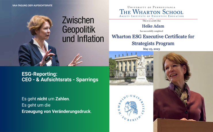 Erfolgreiche Etablierung als Expertin zu ESG & Inflation durch rare Praxiserfahrung. Vorträge, Medien, Wharton-ESG-Certificate, Beirätin.
