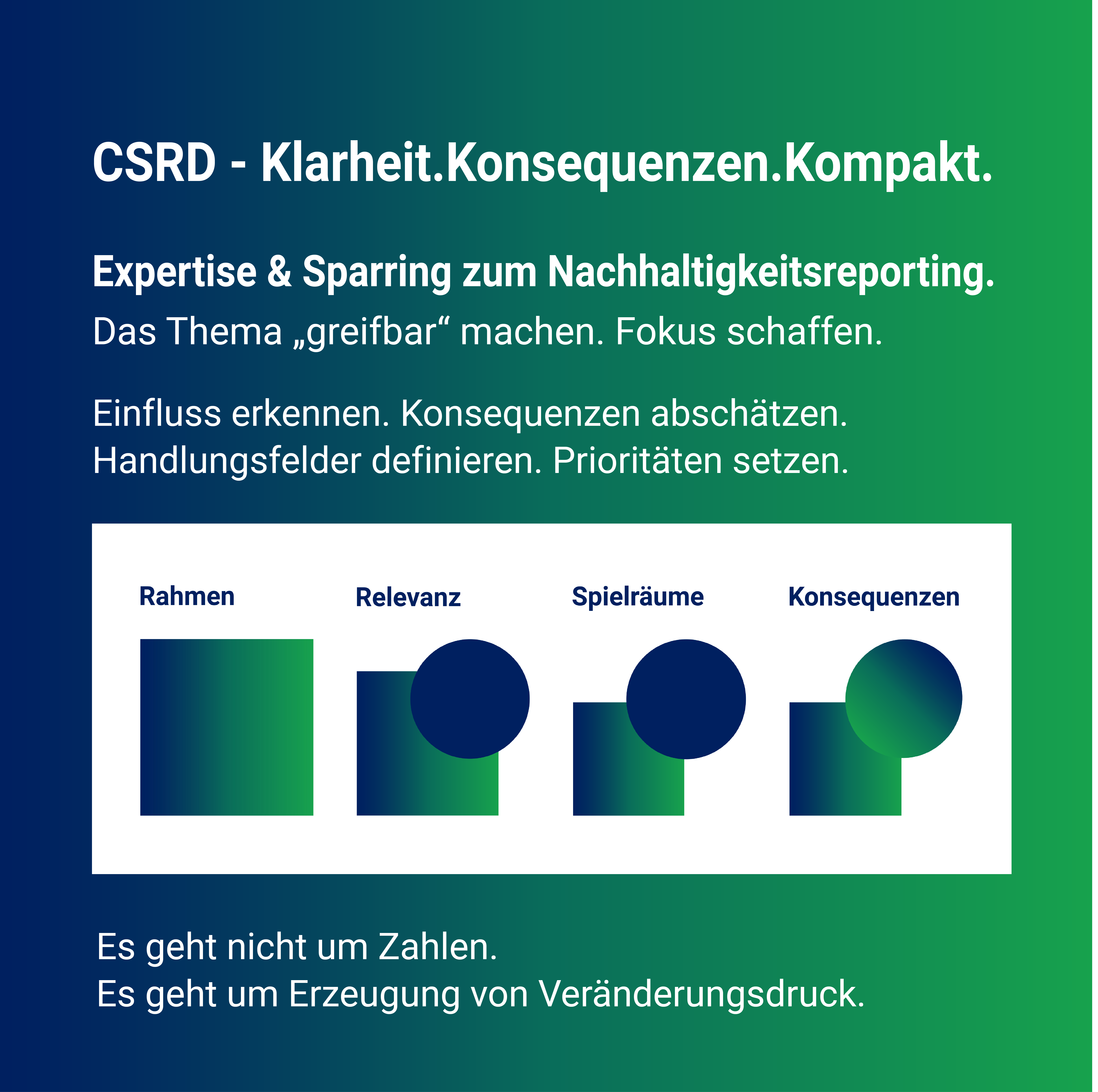 Nachhaltigkeit in Unternehmen – Schnelle und tiefgreifende Veränderung wird eingefordert. CSRD-Reporting formalisiert das Thema mit hohem Druck & Komplexität, um diesen Wandel zu beschleunigen. Wenig greifbar, mit noch unbekannten Konsequenzen.